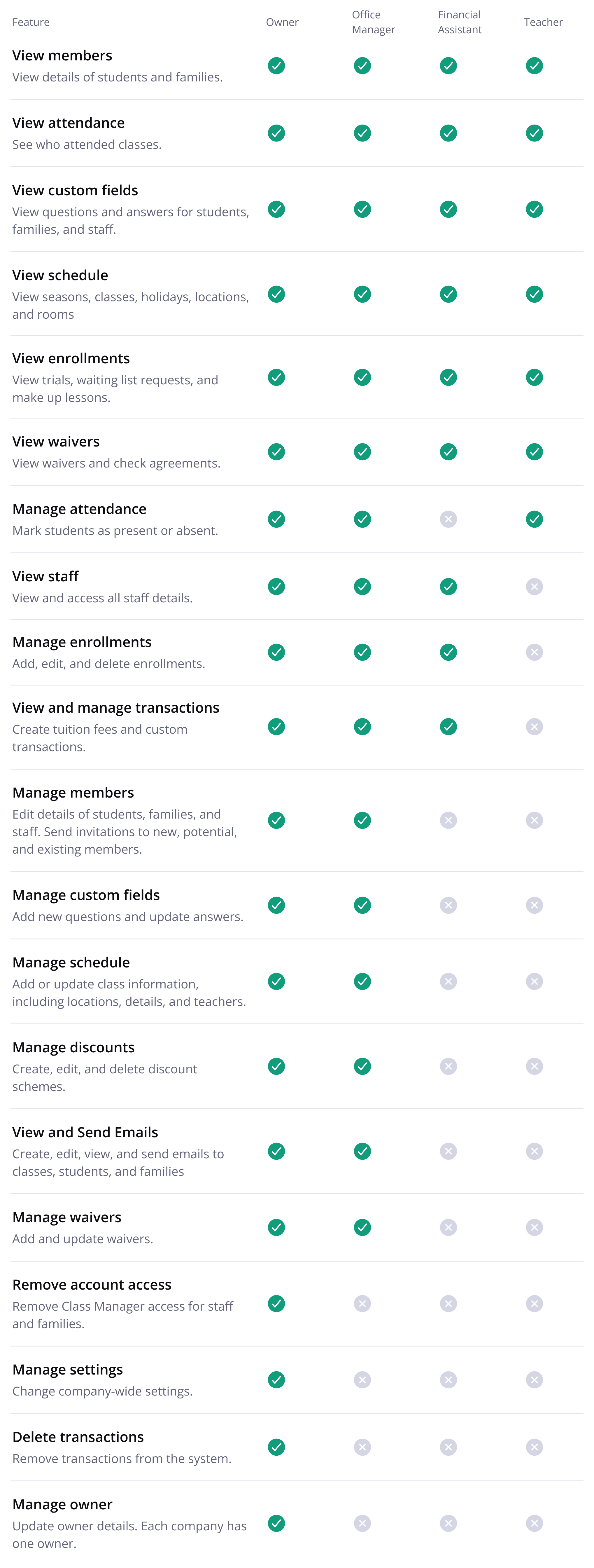 Staff Roles and Access Levels in New Class Manager